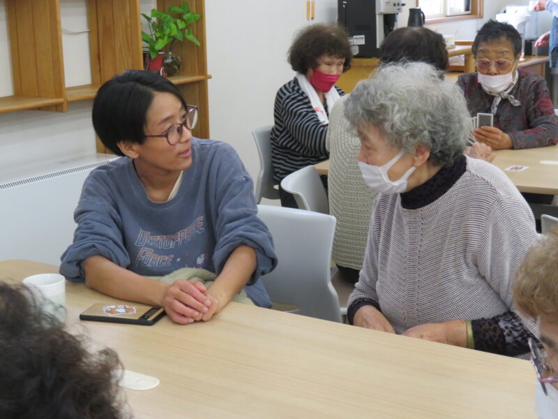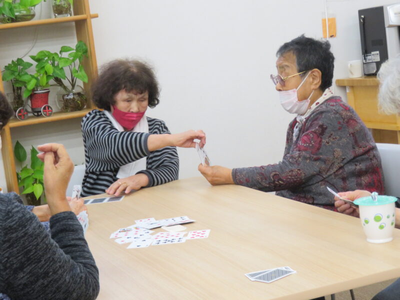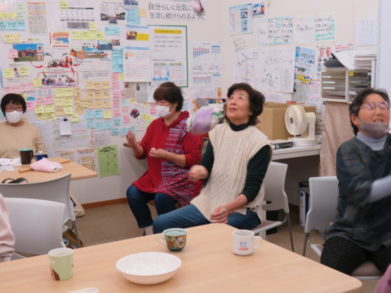2025年10月16日2025/10/16おひさまサロン開催しました一週間ぶりに合えば話に花が咲きます😄「おひさまサロン」参加回数60回、210回、255回の3名の方々に、気持ちばかりのプレゼントですがお渡ししました🎁これからも参加して下さいね😉ほぐし棒で体をほぐしていきましょう!次に、タオル体操で体を伸ばしていきます!続けて「お手玉」遊びで手先のトレーニング!今日のおやつは、かわいいハロウィンのお菓子を用意しました🎃皆さん嬉しそうに召し上がっていました😄休憩の後は、栄養士さんの健康講話でした!「血管を守る事で腎臓は元気に働く事が出来る」というお話に、皆さん真剣に耳を傾けていました!もとサロンスタッフだったエリコちゃんが遊びに来てくれました😄久しぶりに参加者さんとお話ししながら、トランプゲームにも参加してくれました😆今日も「ばばぬき」で盛り上がりました!2回ゲームをして、2回とも「ばば」が残ったYスタッフ😭次回リベンジを心に誓いました💪今日の「おひさまサロン」は、これにてお終いです!寒くなってきました!皆さん気を付けてお帰り下さいね~👋来週の「おひさまサロン」は、10月23日(木)定住支援センターで「ミニ運動会」を開催します🎳みんなで楽しみましょうね😄