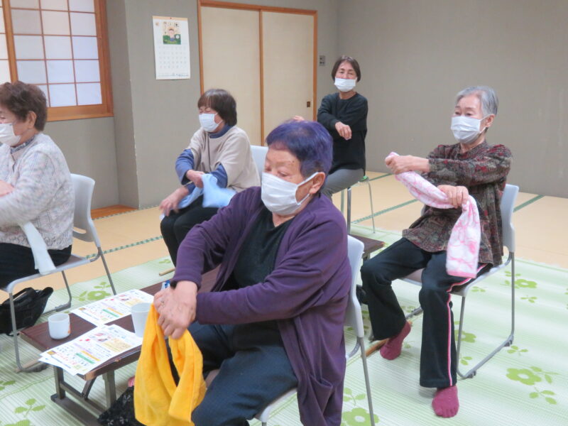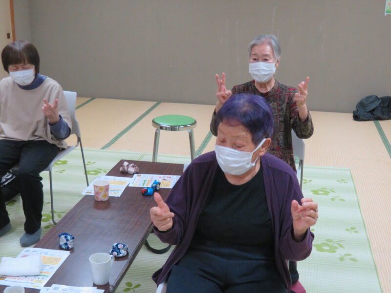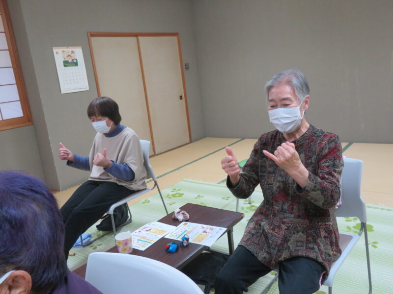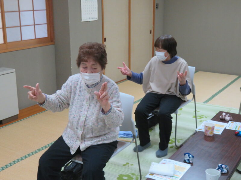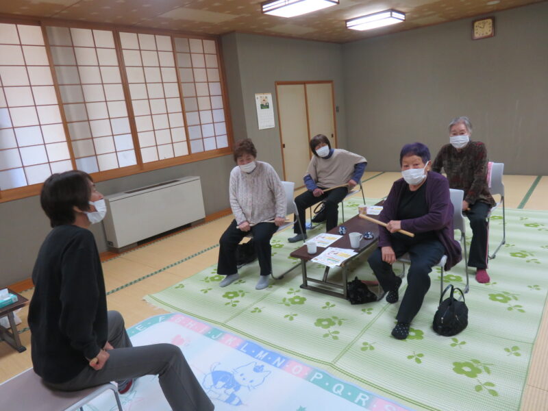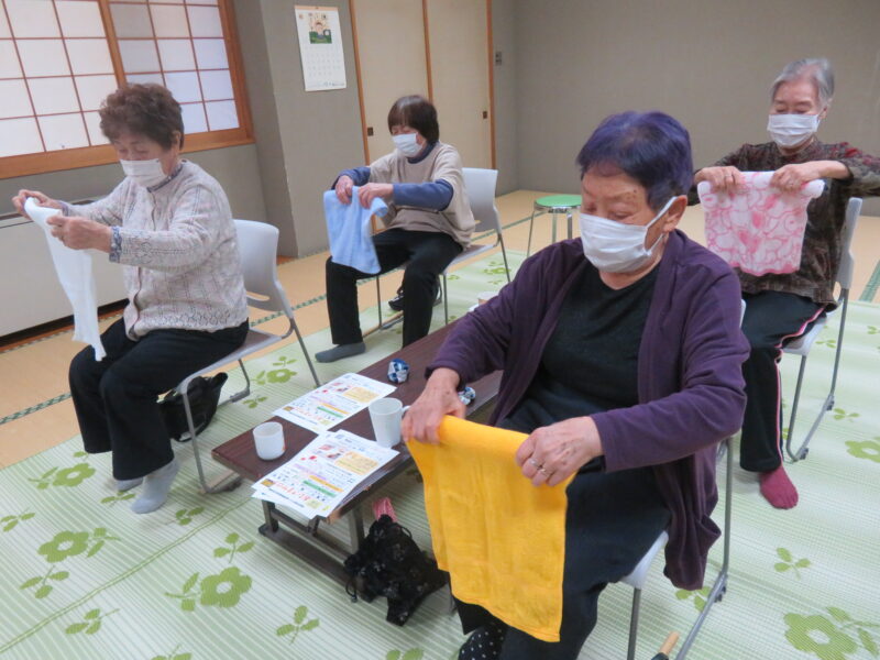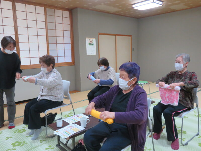 2026年04月16日2026/4/15出張おひさまサロン開催しました今日の「出張おひさまサロン」に、4名の皆さんが集まってくれました😊最初は、「ほぐし棒」でゆっくり体をほぐします!続けて、指を使ったシナプソロジーに挑戦!出来なくて混乱してる事で脳が活性化されます😉次の「タオル体操」です!ゆっくり伸ばしましょう!続けて、タオルとお手玉を使って指先を動かします!休憩を挟んで「色っ文字&色読み」に挑戦です!言い間違えても笑って、笑って😄最後は、トランプゲーム「ばばぬき」で盛り上がりました!今日の「出張おひさまサロン」は、これにてお終いです!皆さん気を付けてお帰り下さい👋次回の「出張おひさまサロン」は、5月20日(水)町民センターで開催します!皆さんお待ちしてま~す😄